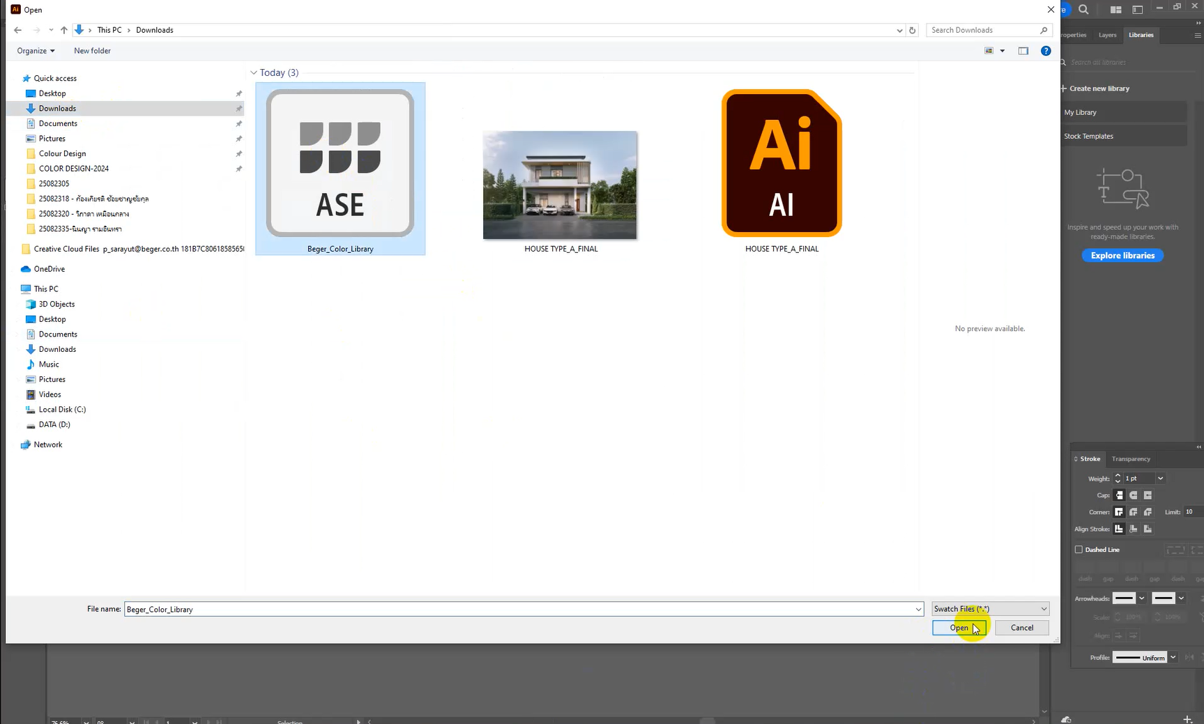 2. เลือกไฟล์ปลั๊กอิน Beger Color Library ที่ดาวน์โหลดไว้ แล้วกด Open เฉดสีทั้ง 1,232 เฉด ของ Beger จะปรากฏขึ้นบนหน้าจอ และสามารถเลือกใช้งานได้ทันที