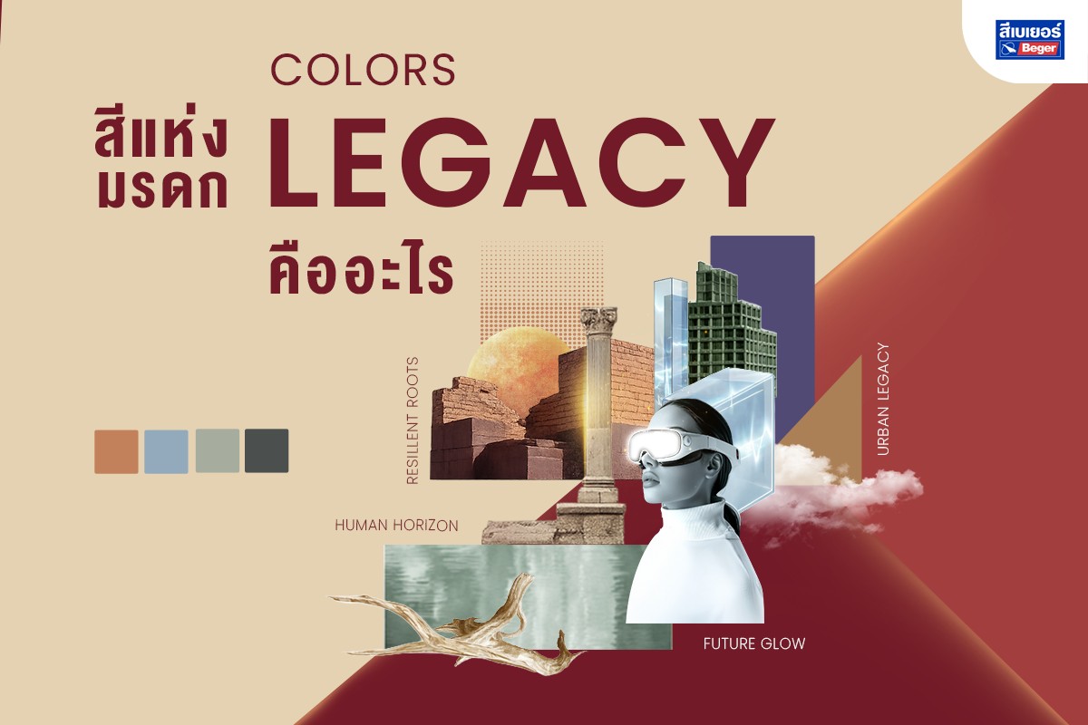COLOR LEGACY หมายถึงแนวคิดการออกแบบสีที่มองว่าสีคือส่วนหนึ่งของชีวิต ไม่ใช่เพียงองค์ประกอบตกแต่ง คำว่า “มรดก” ในที่นี้ไม่ได้หมายถึงของเก่าที่หยุดนิ่ง แต่คือสิ่งที่ยังมีชีวิตที่สรรค์สร้างความสุข และสามารถพัฒนาไปพร้อมกับผู้คนในแต่ละยุคสีในแนวคิด COLOR LEGACY ทำหน้าที่เหมือนภาษา เป็นภาษาที่บอกเล่าความทรงจำของผู้คน สะท้อนตัวตนของเมืองและสังคม และเปิดพื้นที่ให้อนาคตเกิดขึ้นได้จริง เมื่อสีถูกเลือกจากความเข้าใจมนุษย์ ไม่ใช่แค่ตามเทรนด์ สีจึงกลายเป็นรากฐานของการอยู่อาศัย และส่งผลต่อความรู้สึกของผู้อยู่อาศัยในระยะยาว