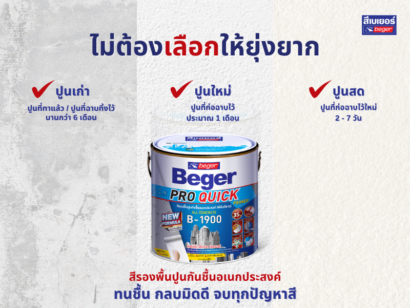 เบเยอร์ โปร ควิก ไพรเมอร์ บี-1900 (Beger Pro Quick Primer B-1900) - สีรองพื้นปูนอเนกประสงค์ ทนชื้นสูง 40% สูตรใหม่! เนื้อสีขาวเข้มข้นกลบพื้นผิวได้ดียิ่งขึ้น พร้อมใช้งานไม่ต้องผสมทินเนอร์! เบเยอร์ บี-1900 สีรองพื้นปูนอเนกประสงค์ สูตรน้ำมันอย่างมีประสิทธิภาพ