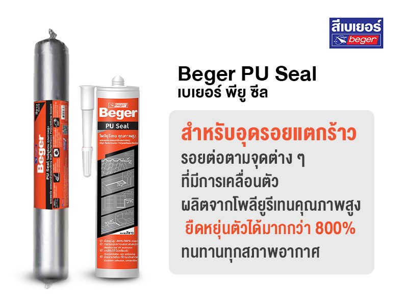 เบเยอร์ พียู ซีล (Beger PU Seal) - โพลียูรีเทน ซีลแลนต์คุณภาพสูงมีความยืดหยุ่นสูง ใช้สำหรับอุดรอยแตกร้าวก่อนทาสี เพื่อเสริมประสิทธิภาพให้ระบบกันซึมทำงานได้เต็มประสิทธิภาพ