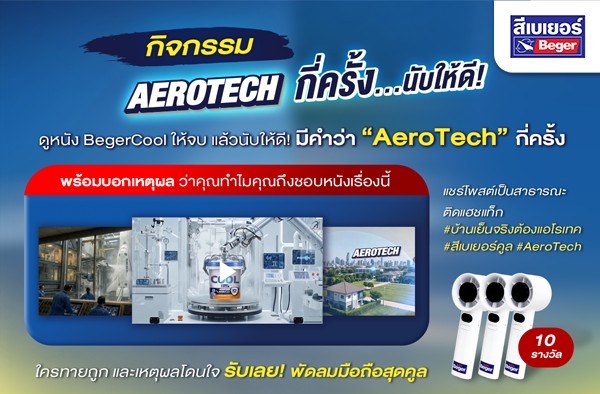 กิจกรรม “Aerotech กี่ครั้ง? นับให้ดี” ร่วมสนุกกับ Beger Cool เพียงดูหนังโฆษณาแล้วตอบคำถาม ลุ้นรับของรางวัลง่ายๆ