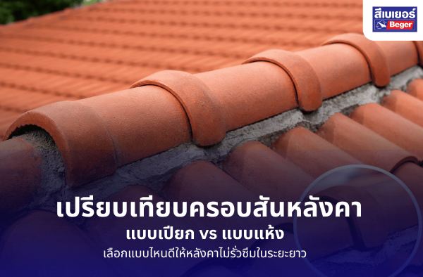 เปรียบเทียบครอบสันหลังคาแบบเปียกและแบบแห้ง ต่างกันอย่างไร แบบไหนกันรั่วได้ดีกว่า พร้อมคำแนะนำเลือกวิธีติดตั้งสันหลังคาให้เหมาะกับบ้าน ลดปัญหาหลังคารั่วและยืดอายุการใช้งานหลังคาในระยะยาว…