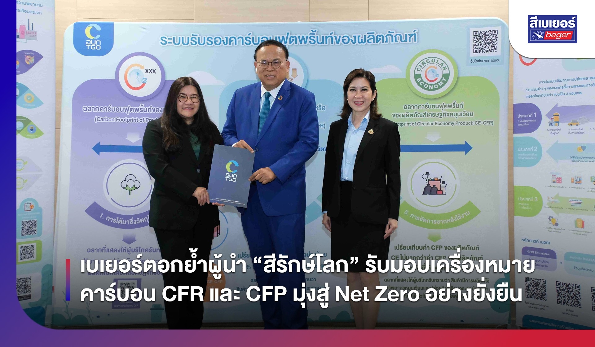 เบเยอร์ตอกย้ำผู้นำ “สีรักษ์โลก” รับมอบเครื่องหมายคาร์บอน CFR และ CFP มุ่งสู่ Net Zero อย่างยั่งยืน
