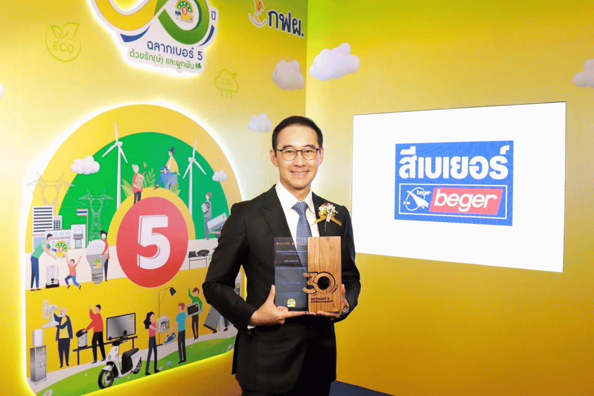 “การได้รับโล่เกียรติคุณครั้งนี้ถือเป็นความภาคภูมิใจของเบเยอร์ ในฐานะบริษัทสีรายเดียวในประเทศไทยที่ได้รับเกียรติในวาระครบรอบ 30 ปีโครงการฉลากประหยัดพลังงาน ความสำเร็จนี้สะท้อนถึงความมุ่งมั่นของเราที่จะพัฒนาผลิตภัณฑ์สีที่มีคุณภาพสูง ลดความร้อน ประหยัดพลังงาน และช่วยลดคาร์บอน เพื่อสร้างอนาคตที่ยั่งยืนให้กับประเทศและโลก”