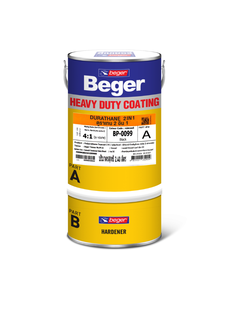 สีโพลียูรีเทน 2in1 ชนิด 2 ส่วนผสม ใช้เป็นทั้งสีรองพื้นและสีทับหน้าในตัวเดียวกัน ป้องกันการเกิดสนิมได้ดี ทาได้ทุกพื้นผิวโลหะ สามารถใช้ทาเหล็กกัลวาไนซ์ เหล็กดำ เหล็กชุบซิงค์ สังกะสี อลูมิเนียม สแตนเลส หรือเหล็กที่มีความมันวาวสูง ทนทานทุกสภาวะอากาศ ทนทานต่อรังสี UV ทนทานต่อการกัดกร่อน กรด ด่าง และสารเคมี