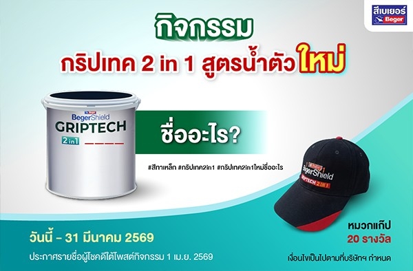 กริปเทคชวนร่วมกิจกรรมตั้งชื่อ กริปเทค 2 in 1 สูตรน้ำตัวใหม่ เพียงคอมเมนต์ชื่อสินค้า พร้อมทำตามกติกา ก็มีสิทธิ์ลุ้นรับ หมวกกริปเทค มูลค่า 259 บาท แจกจริง ไม่จำกัดจำนวนรางวัล ร่วมสนุกได้ถึง 31 มีนาคม 2569…
