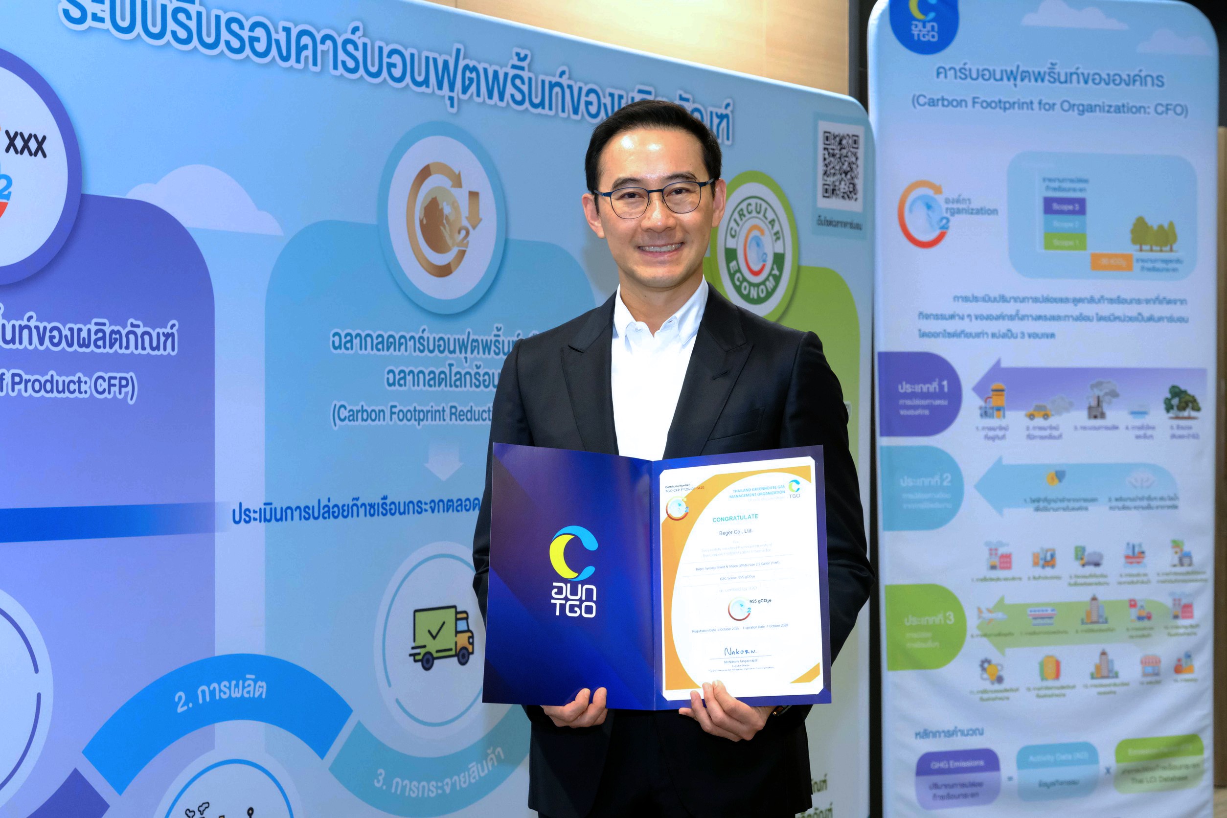 ในโอกาสเดียวกัน ดร.วรวัฒน์ ชัยยศบูรณะ ผู้บริหารบริษัท เบเยอร์ จำกัด ได้เข้ารับประกาศนียบัตร Carbon Footprint of Product (CFP) จากองค์การบริหารจัดการก๊าซเรือนกระจก ครอบคลุมผลิตภัณฑ์กว่า 177 SKU ซึ่งผ่านการประเมินตามหลักเกณฑ์ของ TGO ความสำเร็จนี้ทำให้เบเยอร์เป็นหนึ่งในบริษัทสีที่มีจำนวนผลิตภัณฑ์ได้รับการรับรองมากที่สุดในประเทศไทย ตอกย้ำถึงความมุ่งมั่นขององค์กรในการบริหารจัดการคาร์บอนอย่างโปร่งใส ตรวจสอบได้ และสอดคล้องกับมาตรฐานระดับสากล